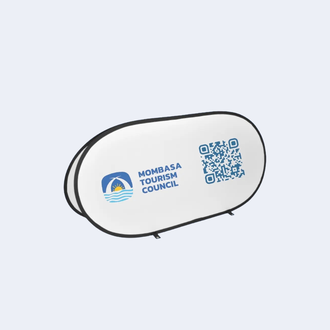 Premium pop-up stand with dye-sublimated fabric graphics. High-definition print, professionally stitched, and mounted on a lightweight collapsible frame.