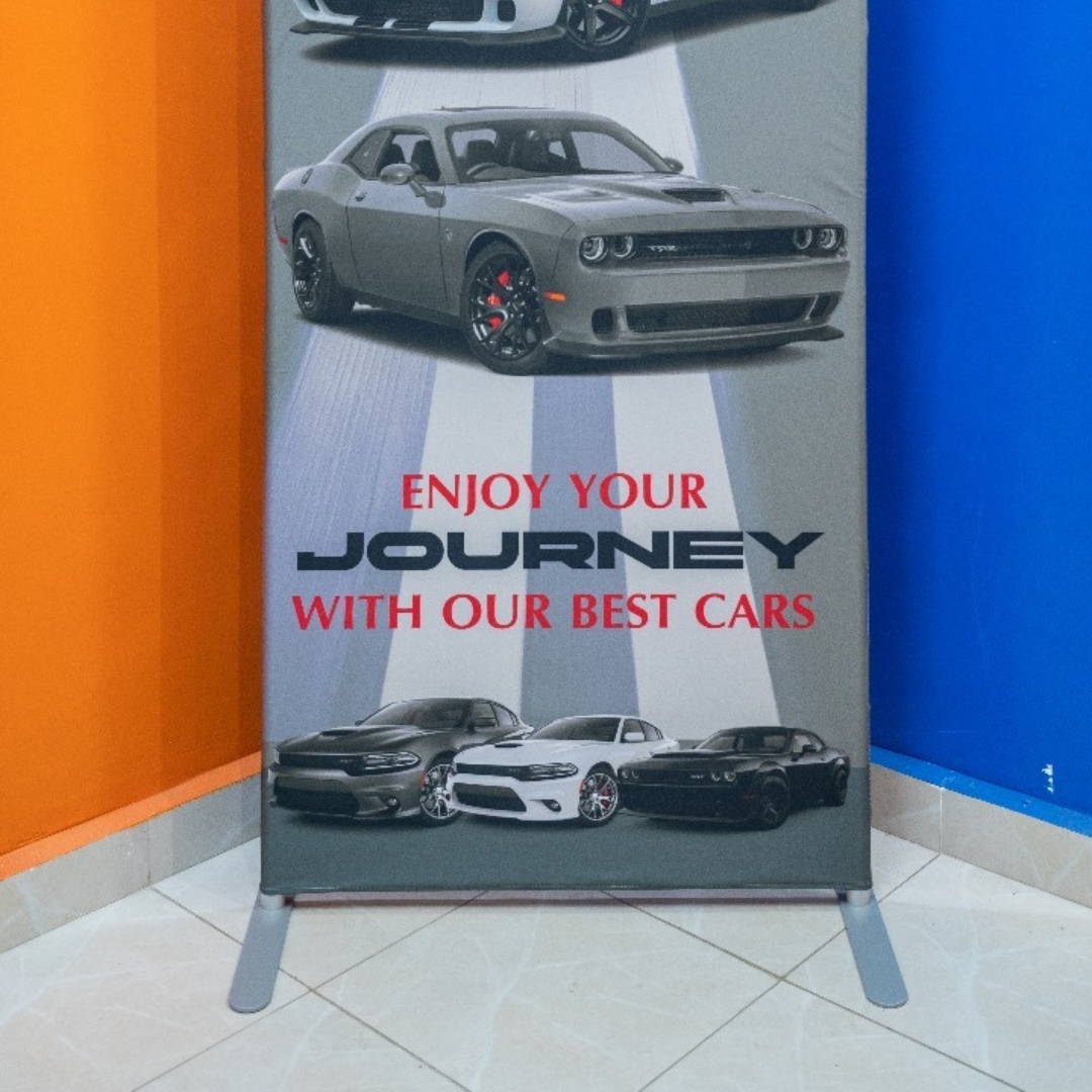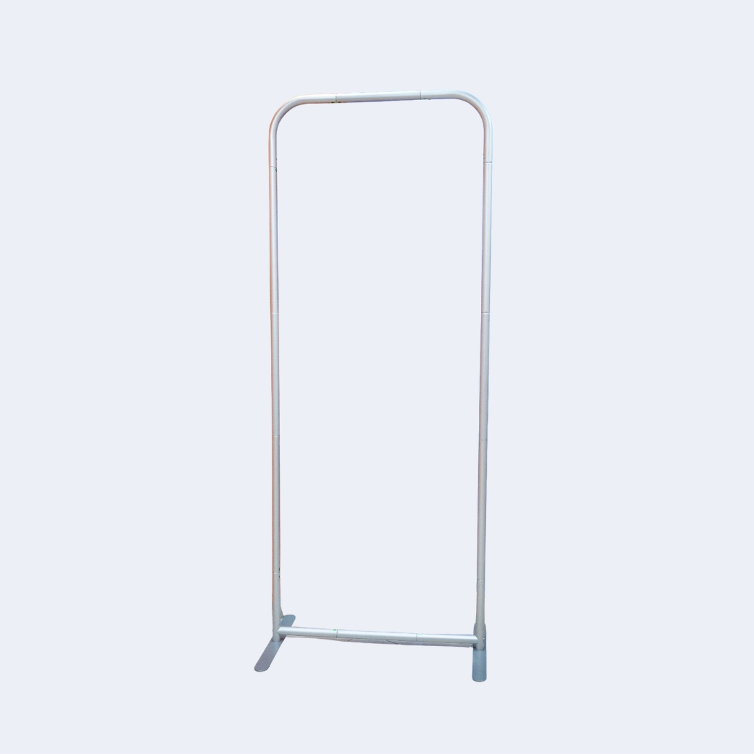 Tension banner with slim base, size 200cm x 80cm. Sleek, stable, and perfect for professional indoor branding and promotional displays.